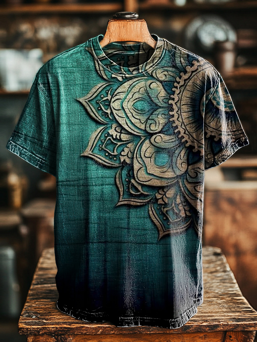 Unisex Vintage Abstract Mandala Print Casual Loose T-Shirt