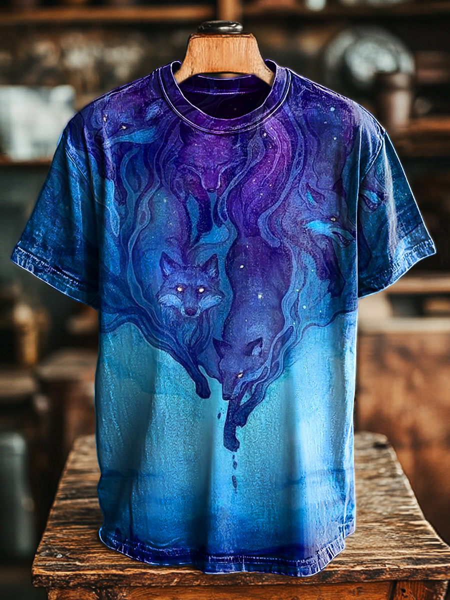 Unisex Vintage Abstract Wolf Pack Print Casual Loose T-Shirt