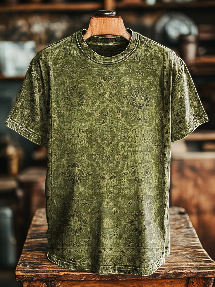 Unisex Vintage Ethnic Symmetrical Floral Print Casual Loose T-Shirt