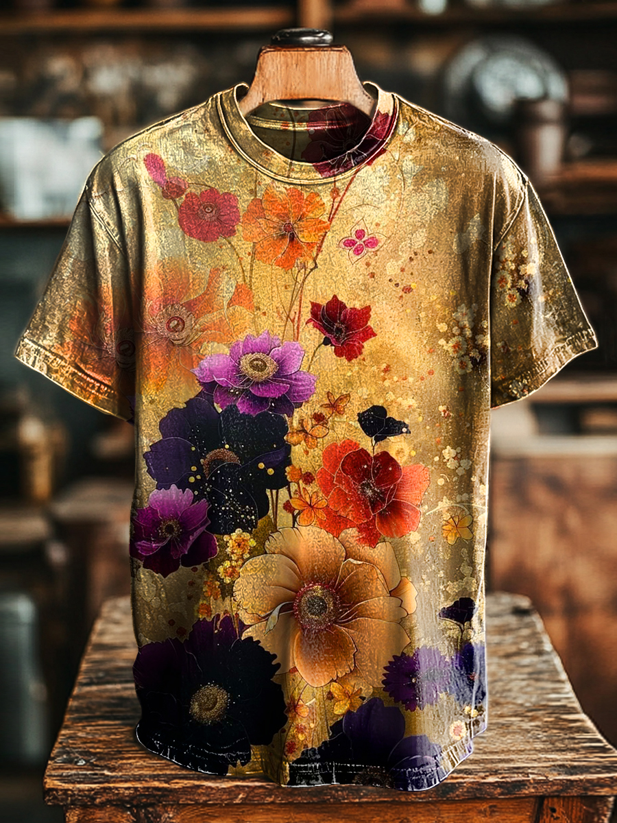 Unisex Vintage Floral Art Print Casual Loose T-Shirt