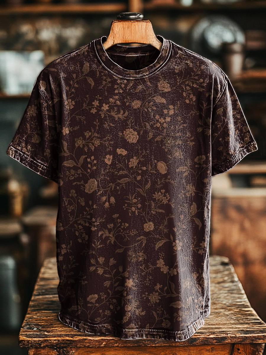Unisex Vintage Floral Print Casual Loose T-Shirt