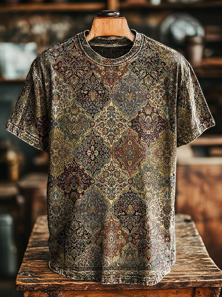 Unisex Vintage Multicolor Ethnic Floral Print Casual Loose T-Shirt