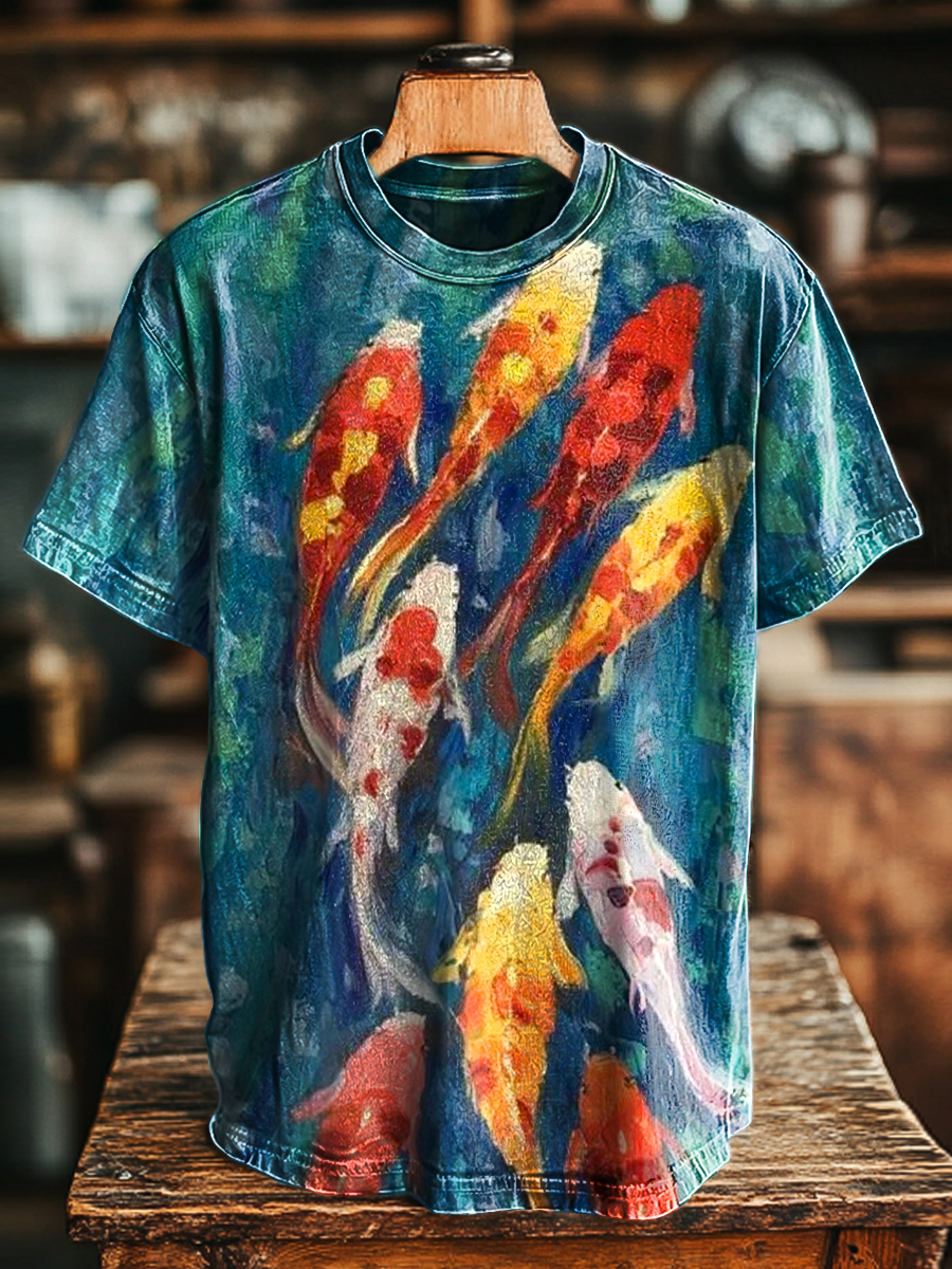 Unisex Vintage Oil Painting Fish Art Print Casual Loose T-Shirt