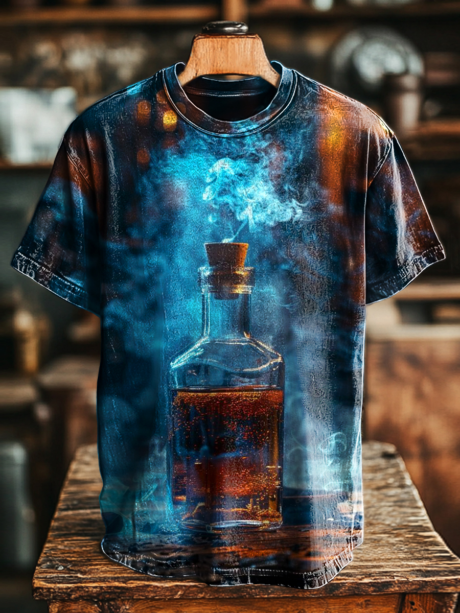 Unisex Vintage Smoke Bottle Print Casual Loose T-Shirt
