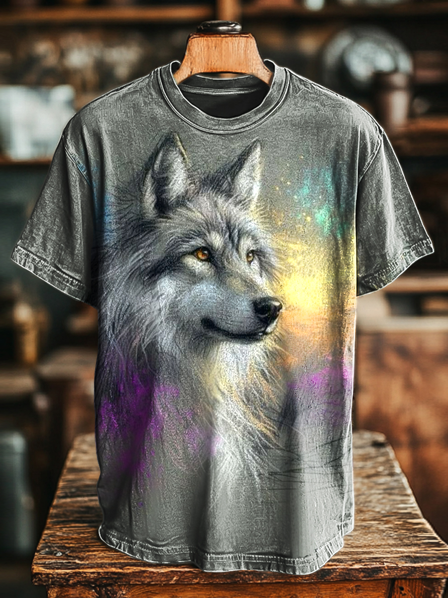 Unisex Vintage Wolf Painted Printed Casual Loose T-Shirt