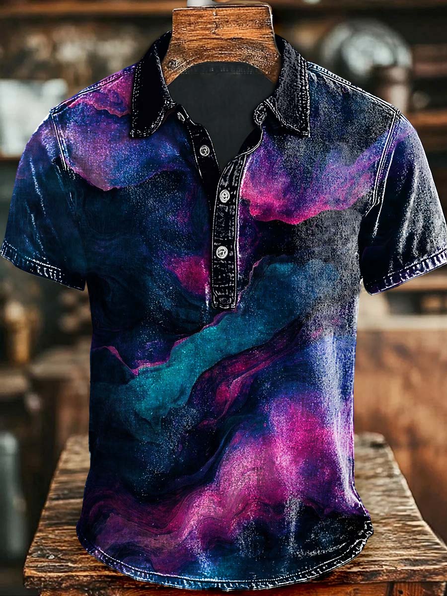 Vintage Abstract Art Gradient Print Casaul Short Sleeve Polo Shirt