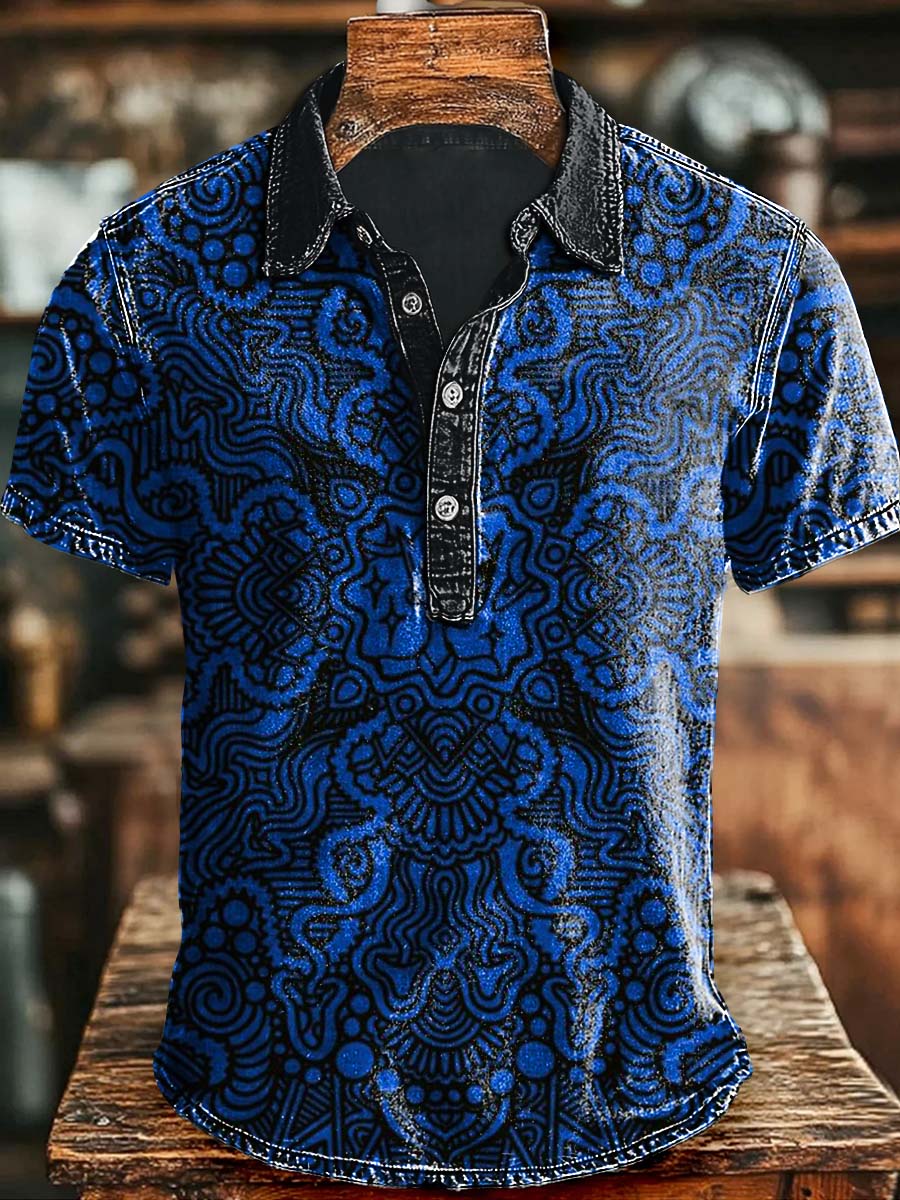 Vintage Abstract Art Print Casaul Short Sleeve Polo Shirt