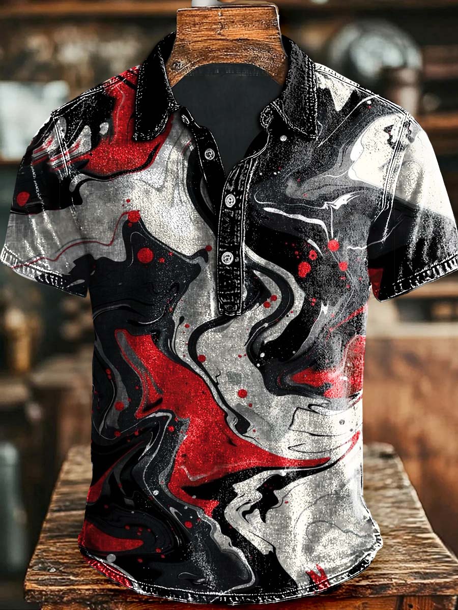 Vintage Abstract Art Rendering Psychedelic Print Casaul Short Sleeve Polo Shirt