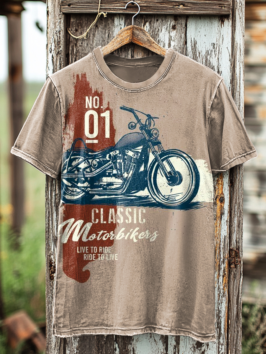 Vintage Abstract Biker Letter Print Casual T-Shirt