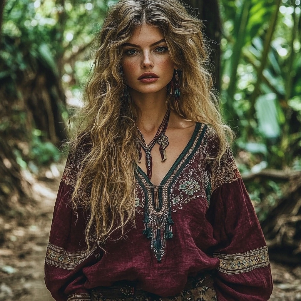 Vintage Embroidered Linen Blend V-neck Loose T-shirt