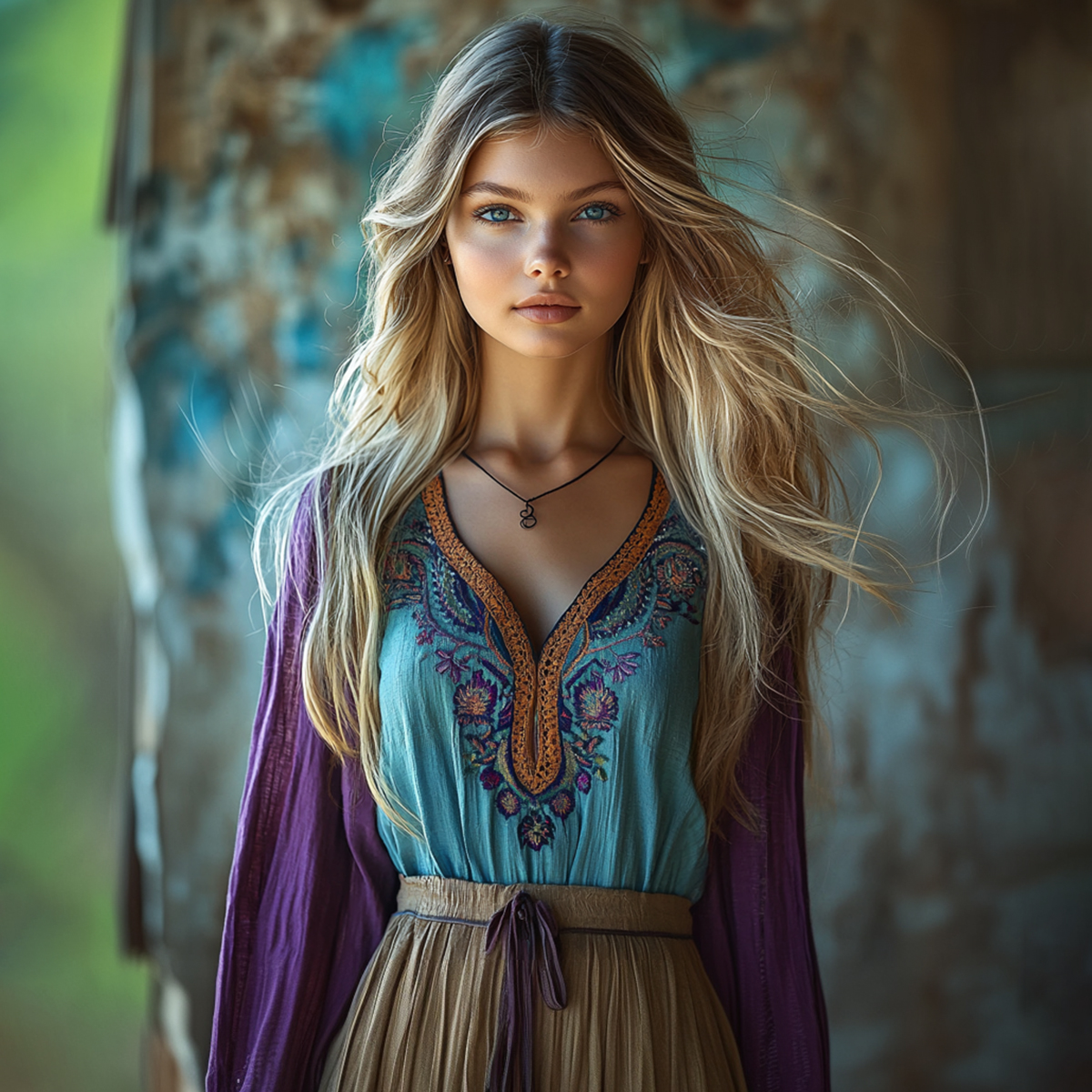 Vintage Floral Tribal Embroidery Art Linen Blend Cozy Tunic