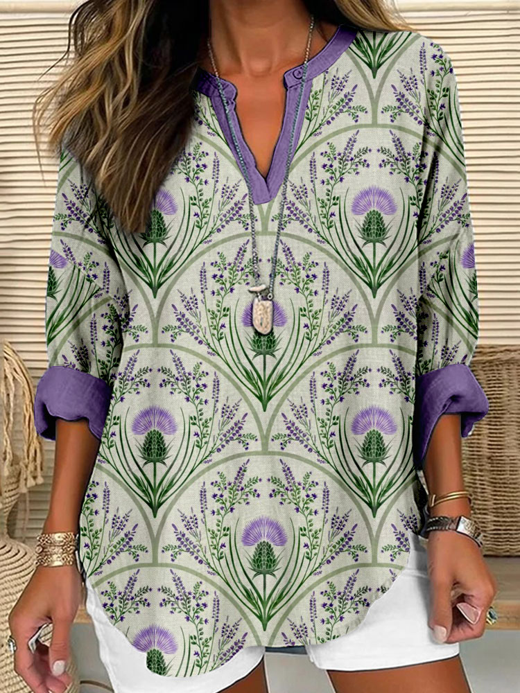 Vintage Scottish Thistle Pattern Linen Blend Cozy Shirt