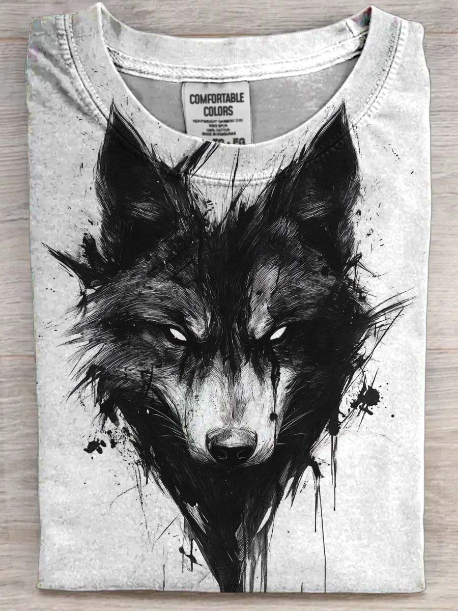 Vintage Wolf Print Casual Short Sleeve T-Shirt