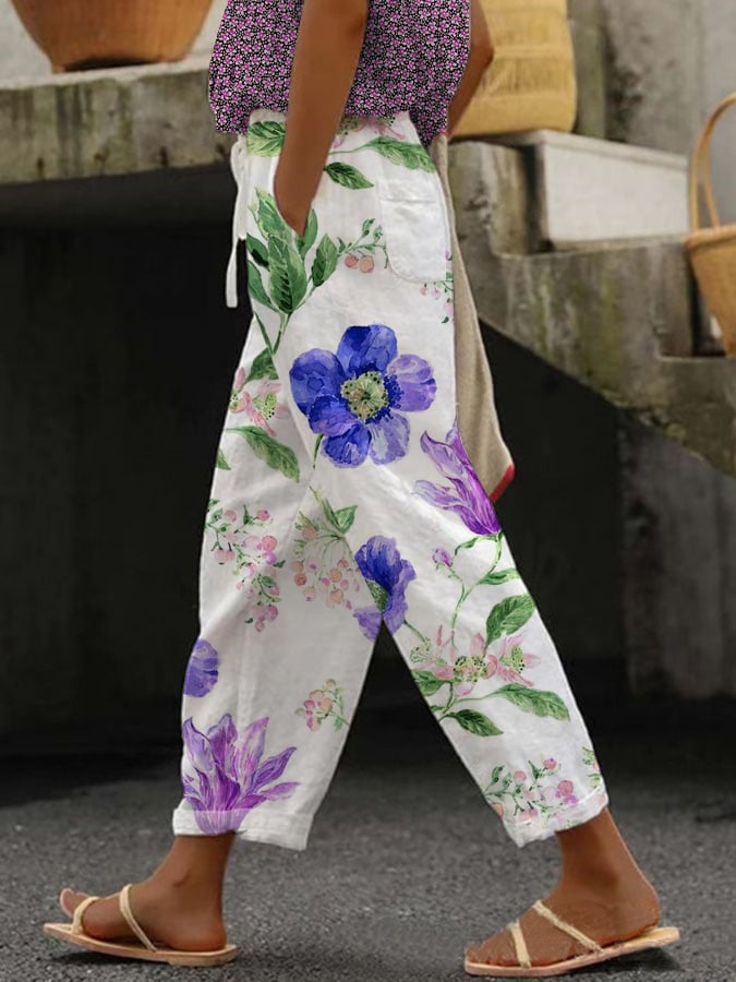 Women's Botanical Floral Design Print Lace-Up With Elastic Waist Loose Casual Pants