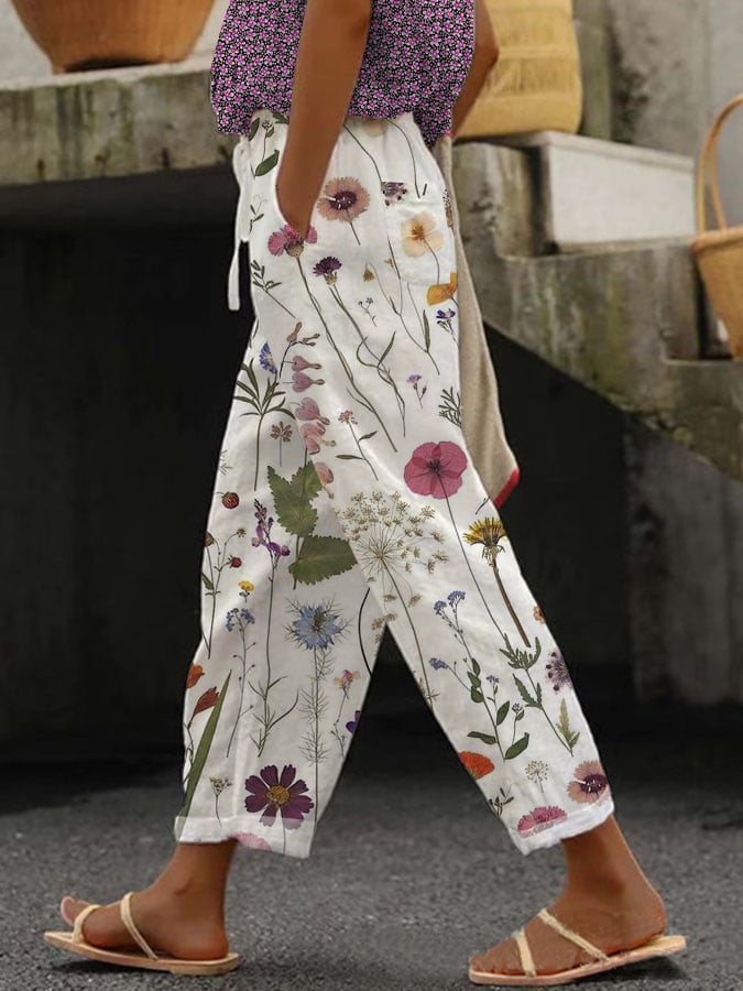 Women's Botanical Floral Design Print Lace-Up With Elastic Waist Loose Casual Pants
