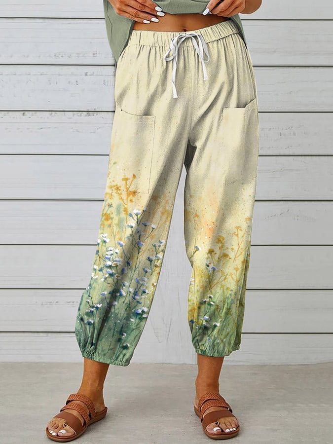 Women's Botanical Floral Print Lace-Up Loose Casual Pants