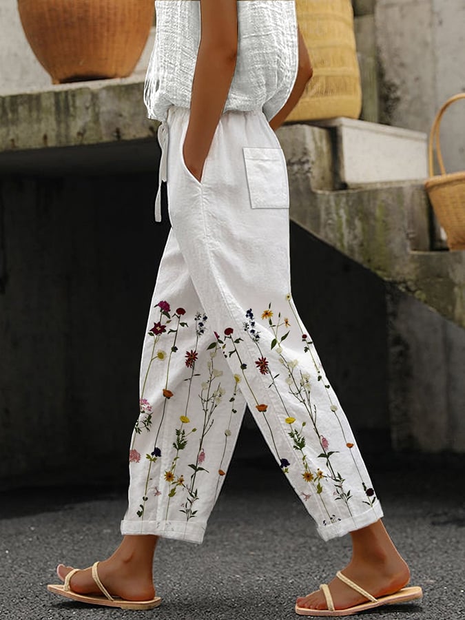 Women's Botanical Floral Print Lace-Up Loose Casual Pants