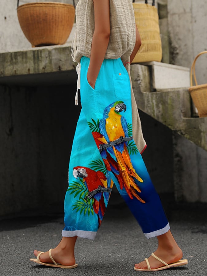 Women's Casual Hawaiian Parrot Print Loose Casual Pants