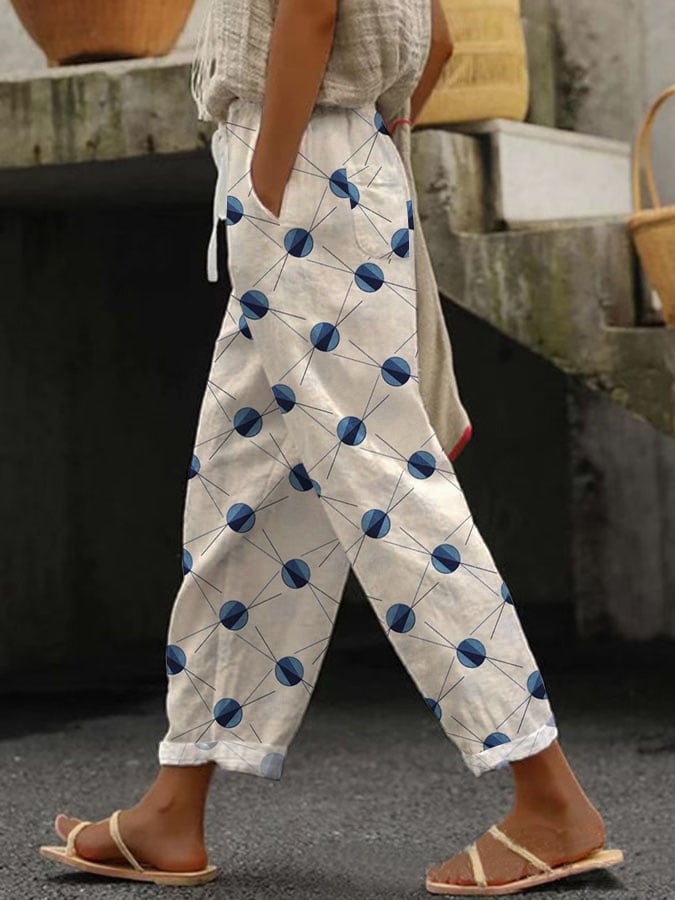 Women's Geometric Polka Dot Design Lace-Up Elastic Waist Loose Casual Pants