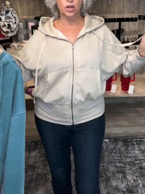 Women's Hooded Zipper Solid Color Jacket