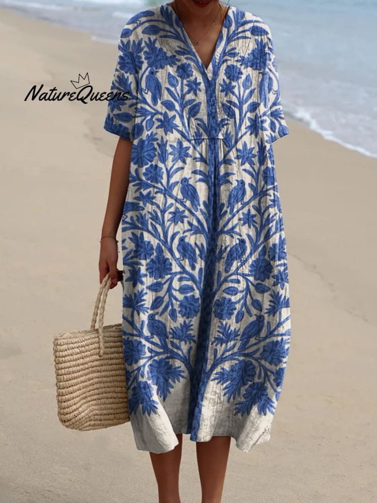 Women's Indian Art Floral Vintage Art Print Flowy Dress
