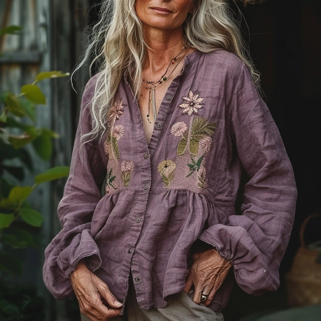 Women's Linen Bohemian Casual Loose Long-sleeved Shirt