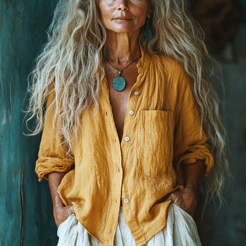 Women's Linen Plain Long-sleeved Breathable Shirt