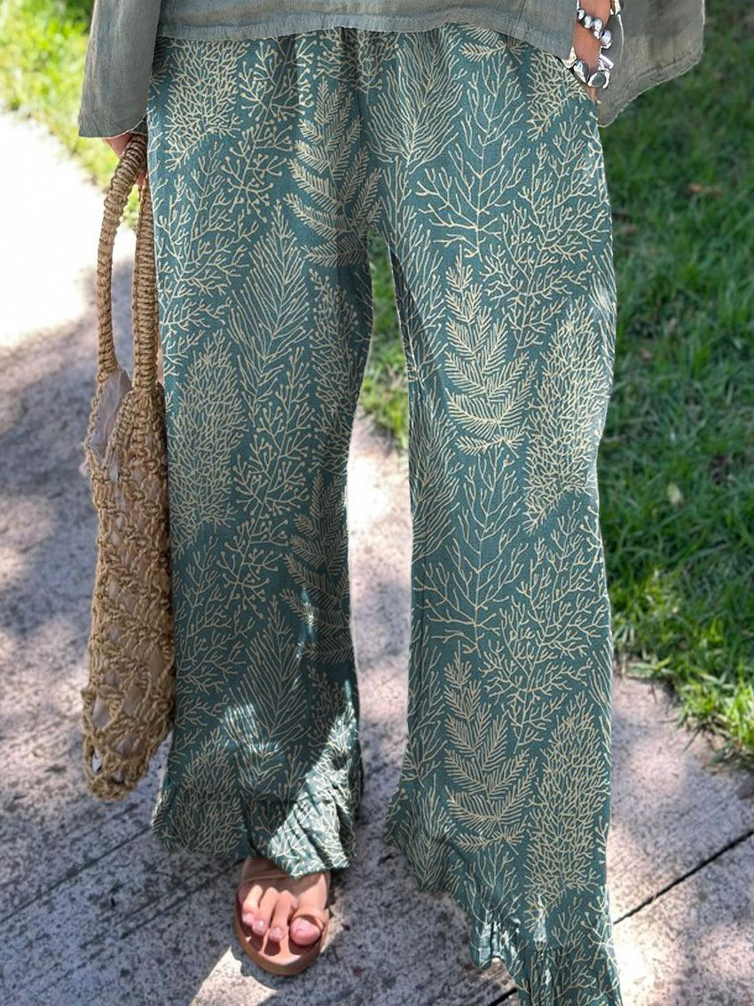 Women's Retro Elegant Floral Art Pattern Printed Cotton And Linen Casual Pants