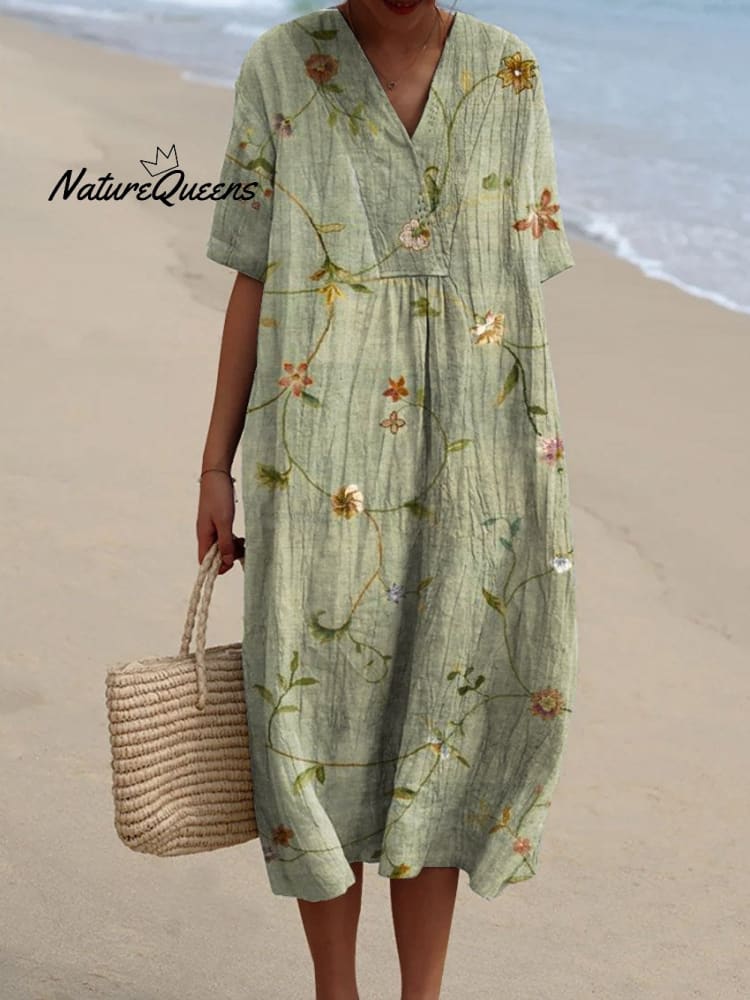 Women's Retro Floral Art Print Casual Flowy Dress