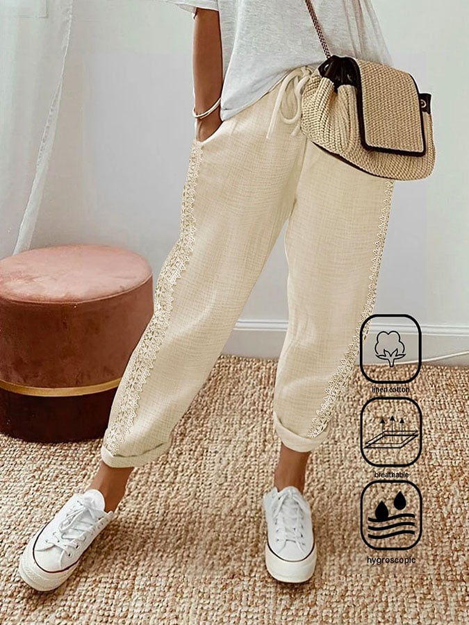 Women's Solid Color Lace Casual Pants