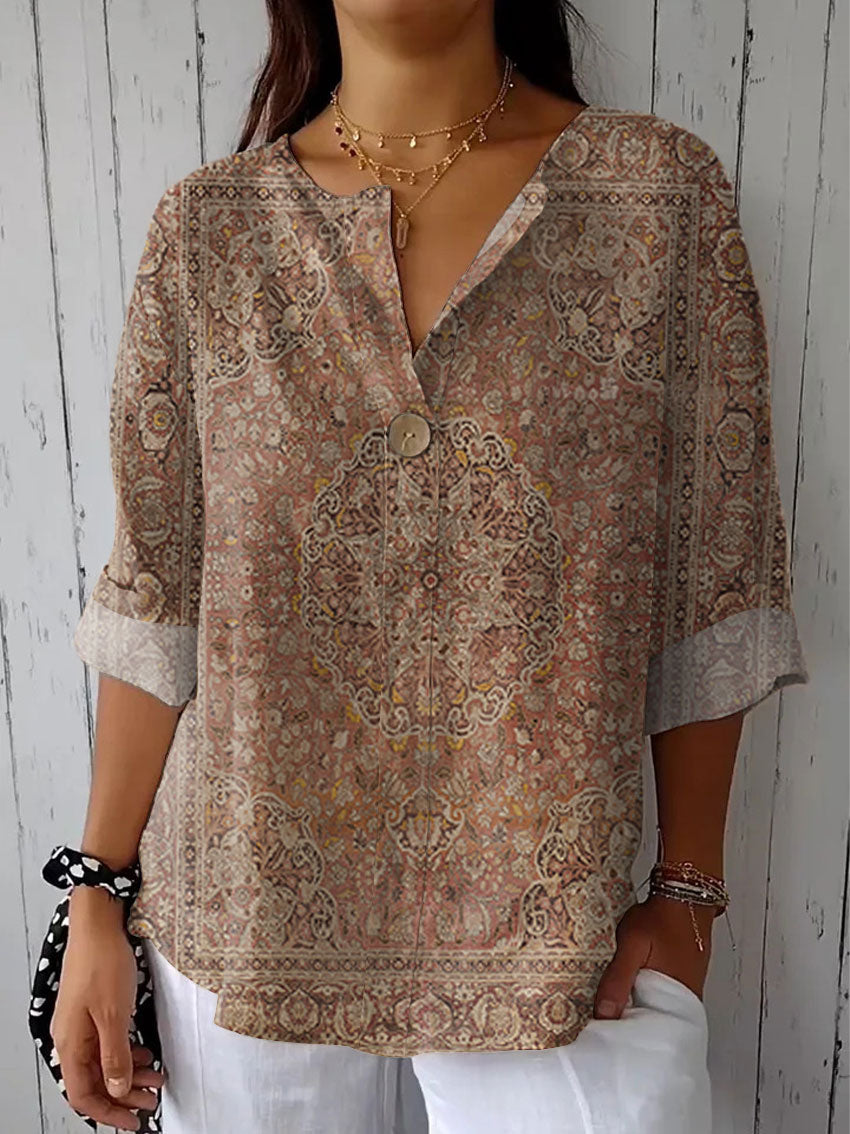 Women's Vintage Abstract Geometric Art Print Casual Cotton Linen Shirt