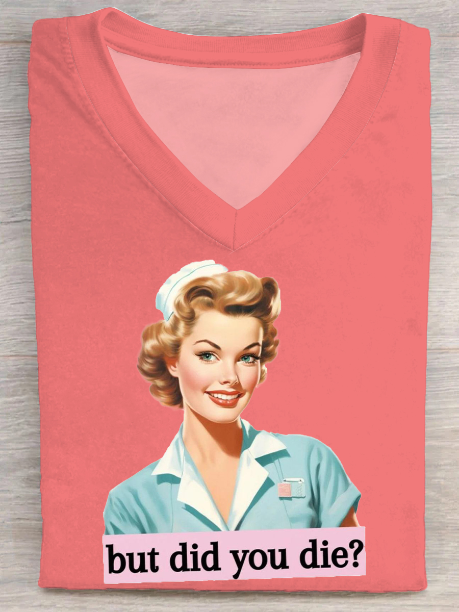 Women's Vintage Funny Art Print Casual Short Sleeve T-shirt