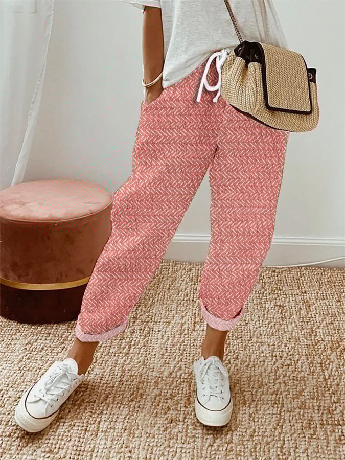 Women's Vintage Herringbone Print Casual Pants