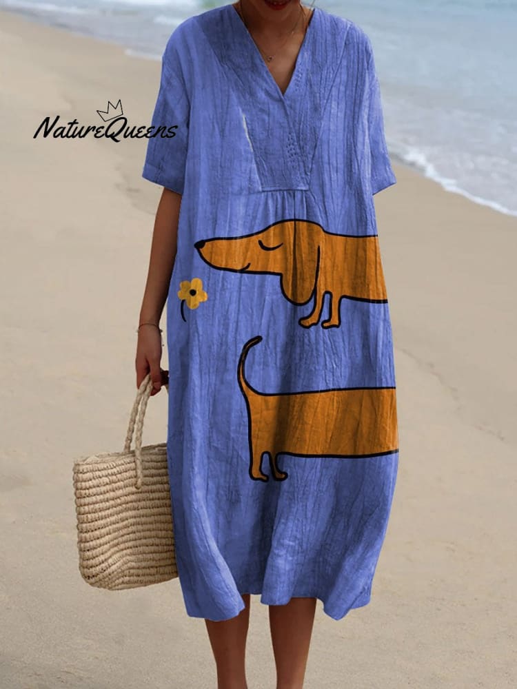 Women's Vintage Lovely Dachshund Art Print Flowy Dress