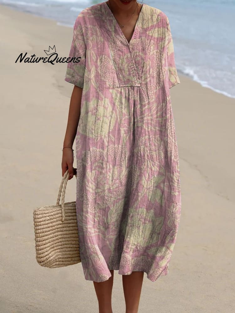 Women's Vintage Lovely Floral Art Print Casual Flowy Dress