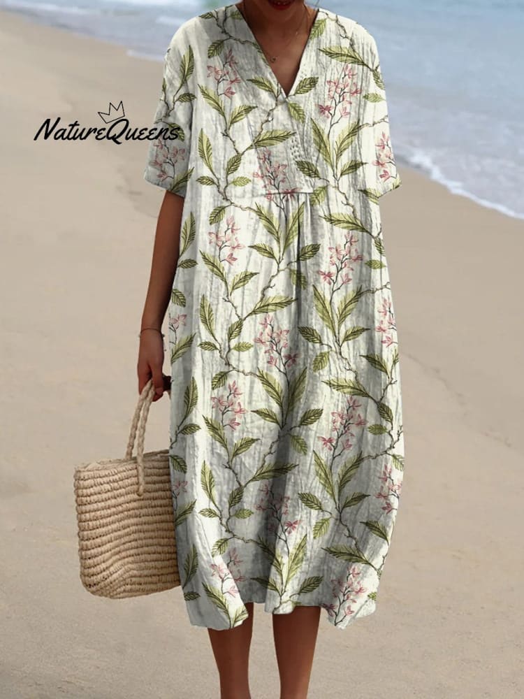 Women's Vintage Style Spring Blossom Pattern Printed Flowy Dress