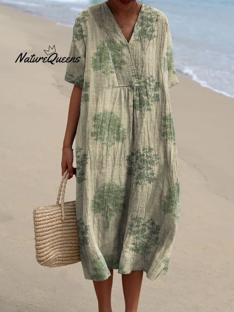 Women's Vintage Style Tree Repeat Pattern Printed Flowy Dress