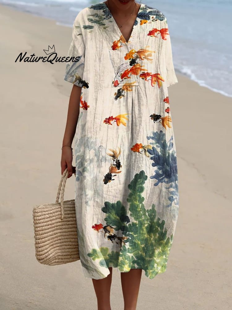 Women's Watercolor Fish Art Print Flowy Dress